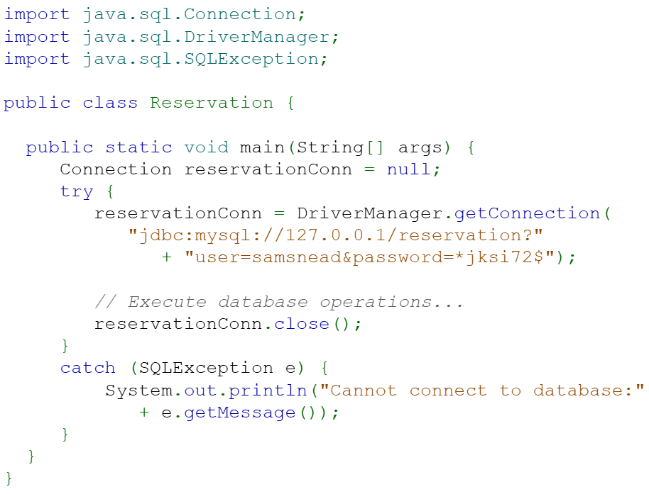 - DriverManager.getConnection() 메서드는 reservationConn이라는 Connection 객체를 생성한다.
